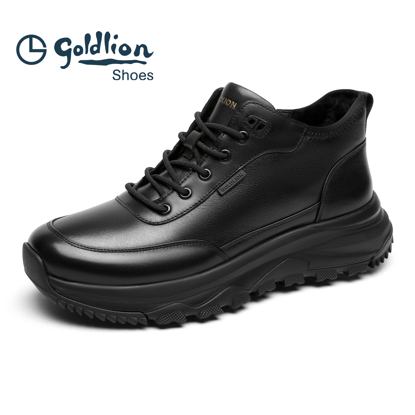 Goldlion加绒保暖高帮鞋男2025冬季新款侧拉链厚底皮毛一体棉靴