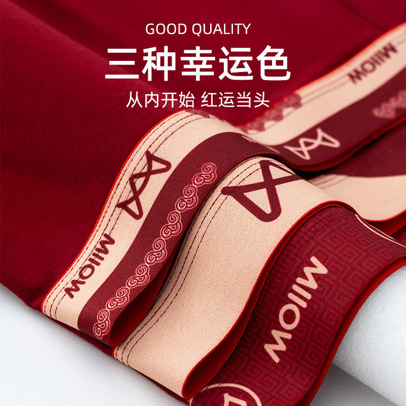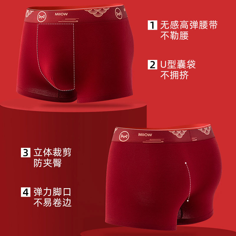 miiow/猫人四角裤红色男士内裤纯棉抗菌透气送礼男生本命年裆结婚