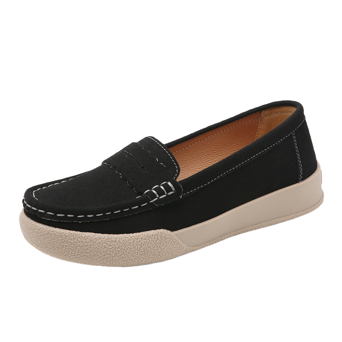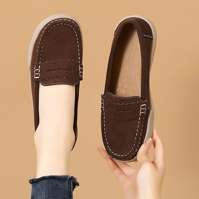 真皮妈妈鞋春秋皮鞋软底防滑一脚蹬女单鞋工作舒适老人平底豆豆鞋