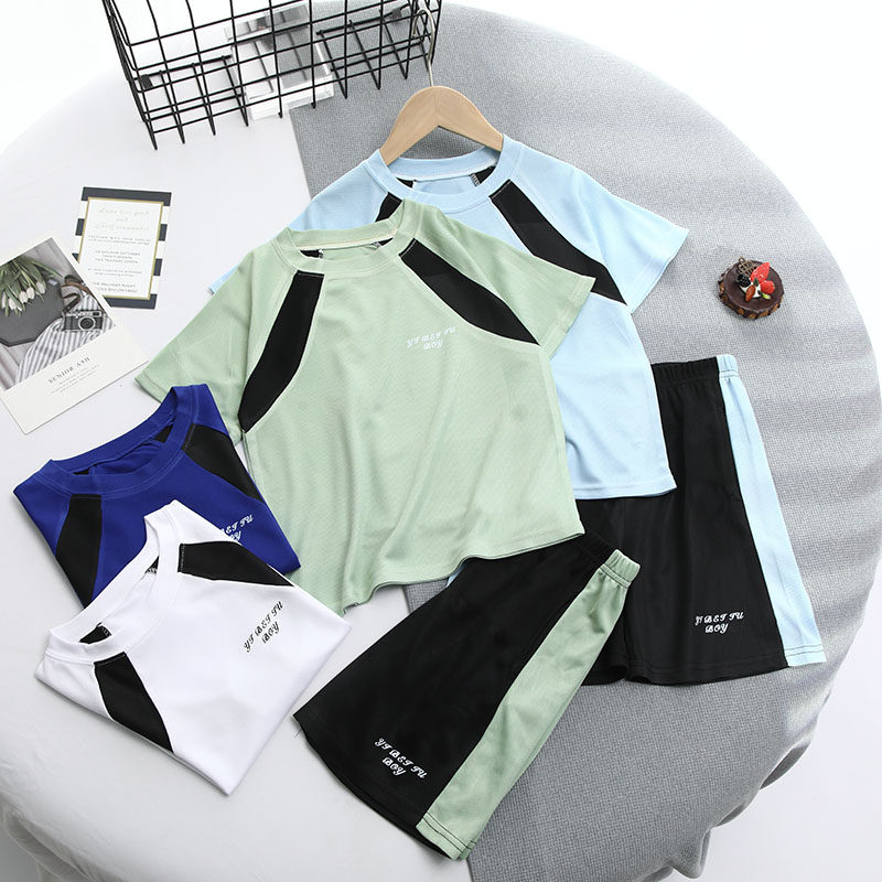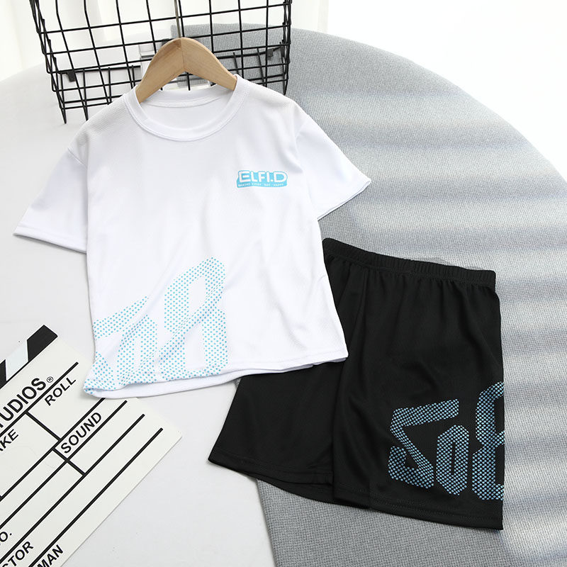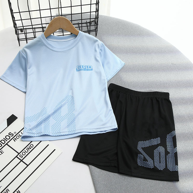 男童速干短袖短裤套装夏季2025新款网眼儿儿童运动两件套中大童套