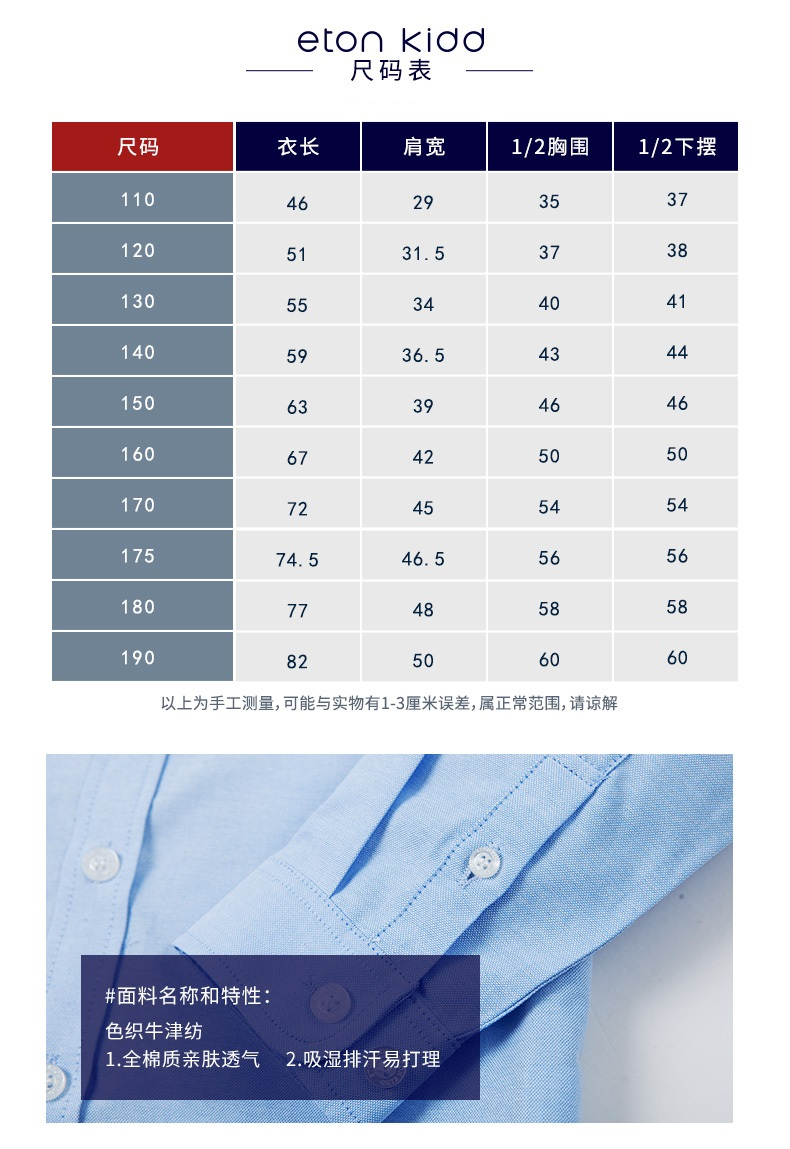 伊顿纪德校服儿童浅蓝色全棉衬衣 秋季新款 男童长袖衬衫16C171惠