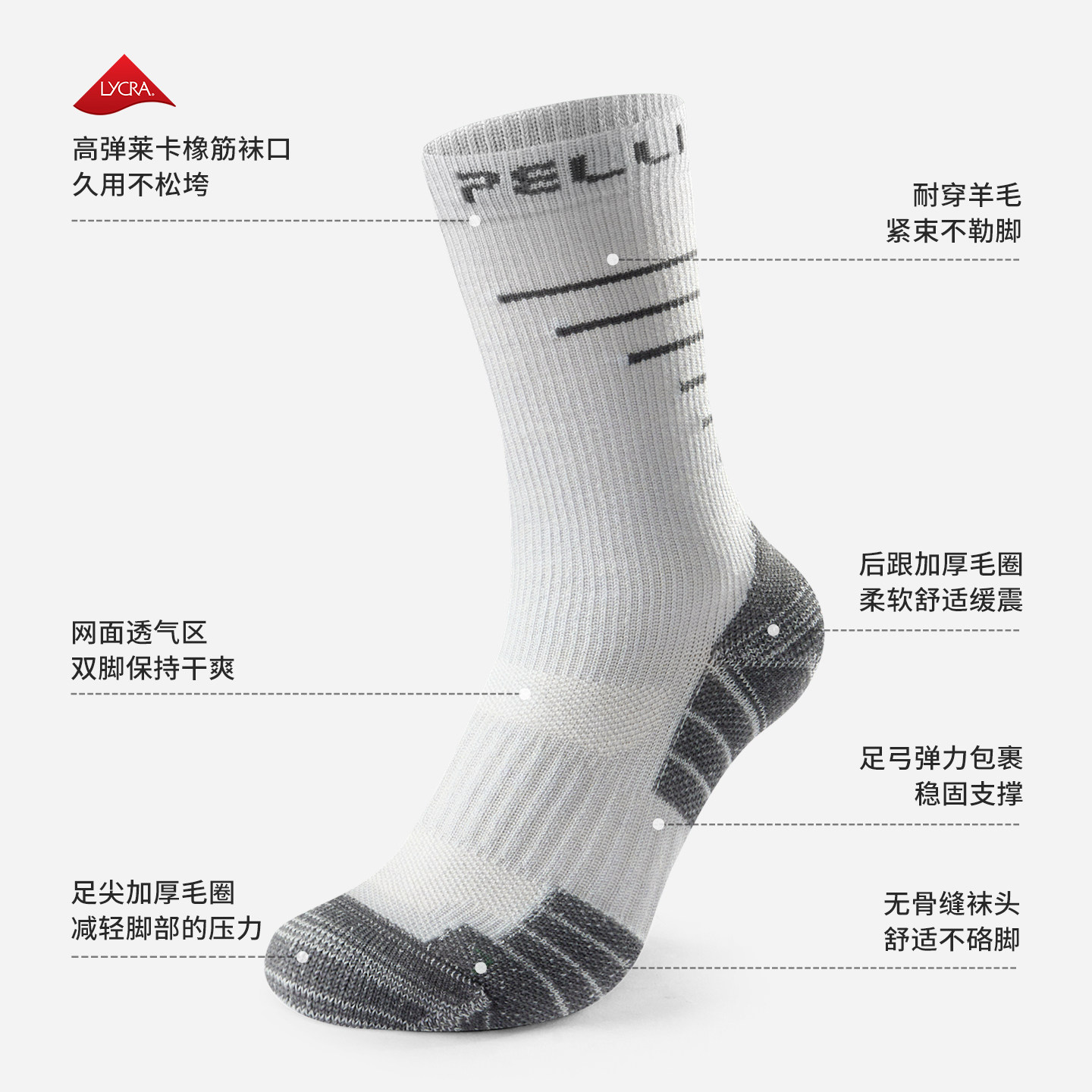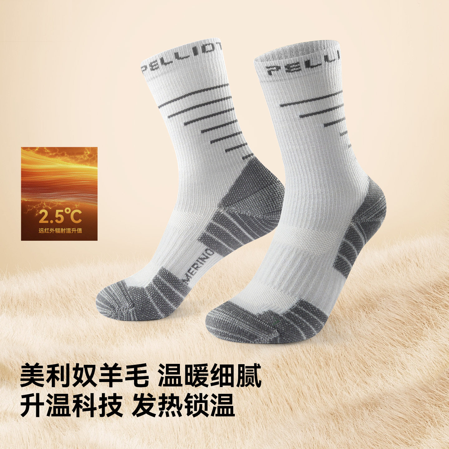伯希和户外运动袜男美利奴羊毛加厚徒步袜冬季登山保暖跑步袜子女