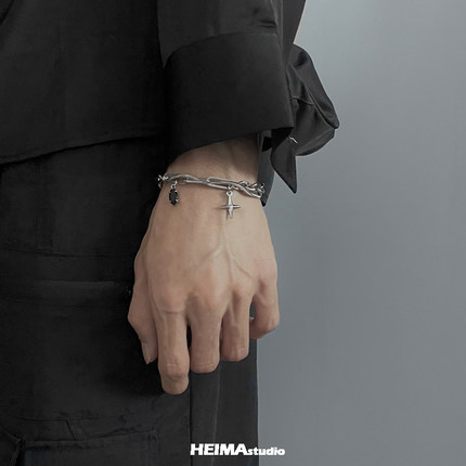 原创十字星手链男轻奢小众高级感潮牌百搭钛钢男生设计感手饰女
