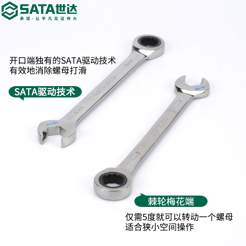 世达全抛光开口快扳两用快速棘轮扳手汽修梅花板子43601-43619