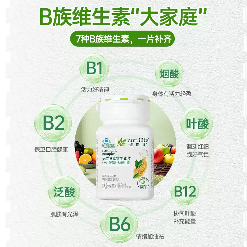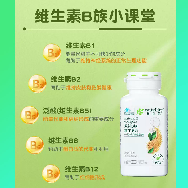 官方正品安利纽崔莱维生素B族天然多种复合维7种维生素胡萝卜素