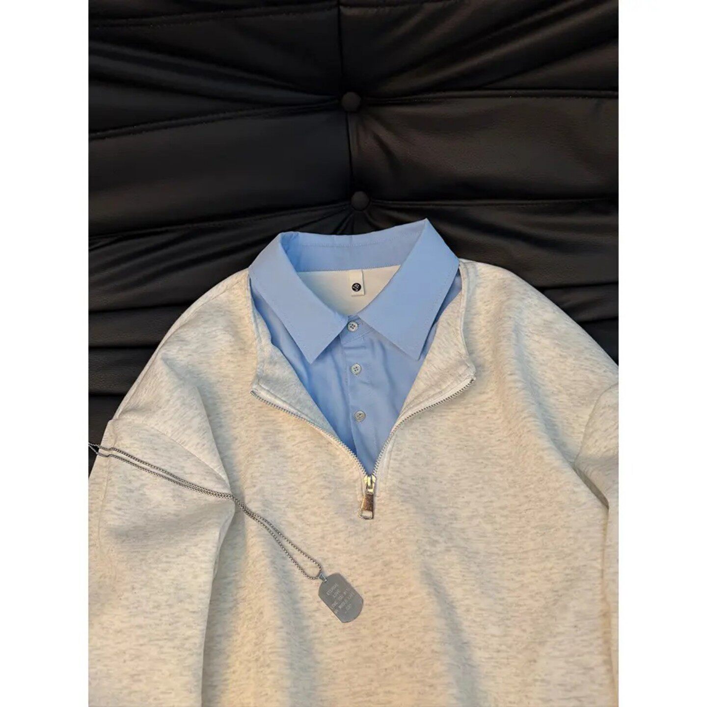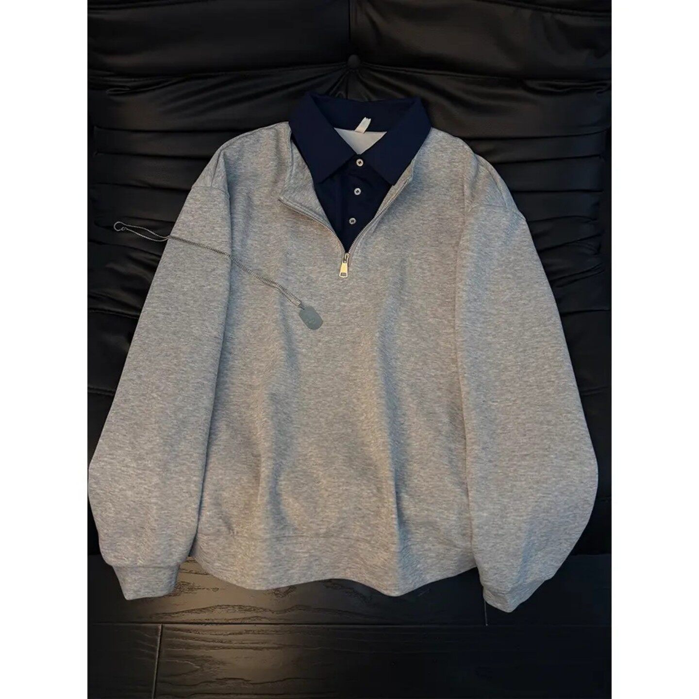 假两件半拉链卫衣男春季翻领拼接衬衫领套头上衣老钱风高级感外套