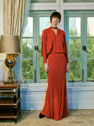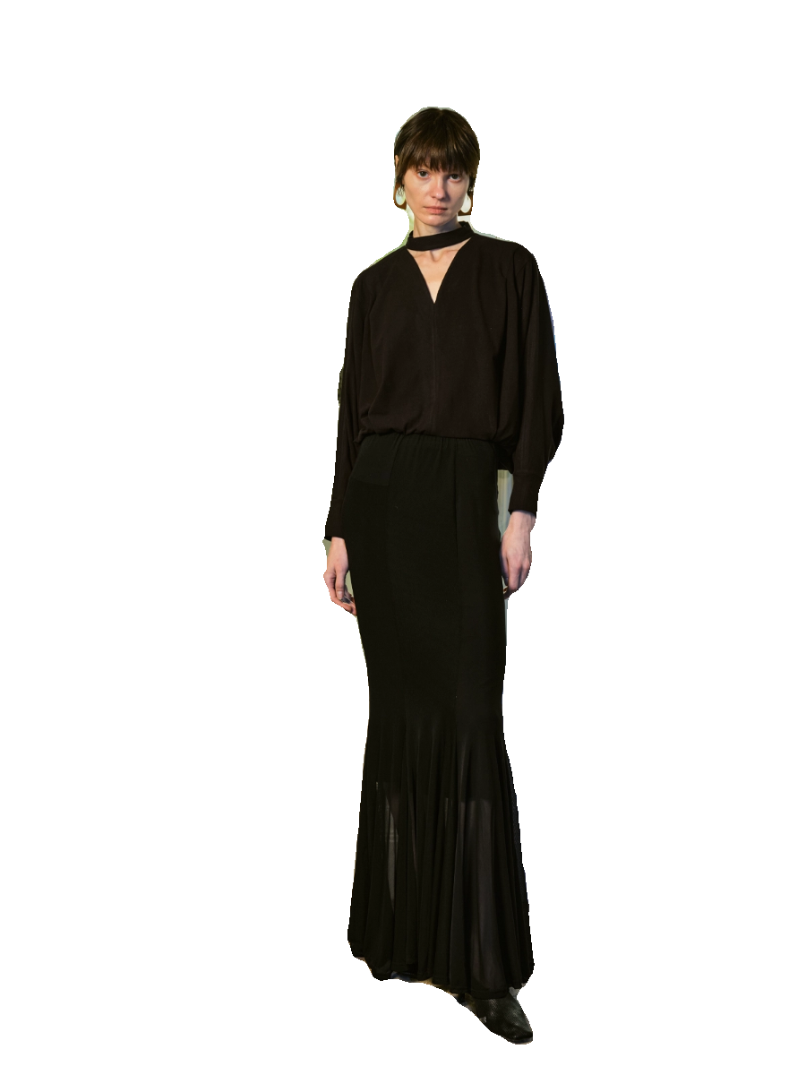 Preekend 红黑两色V领蝙蝠袖鱼尾针织长裙