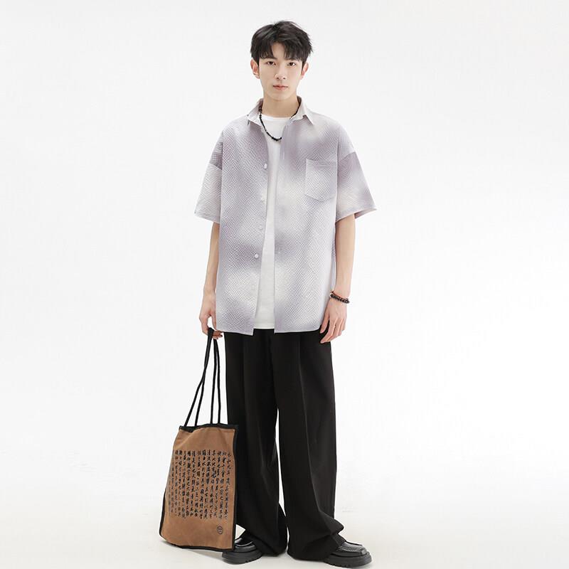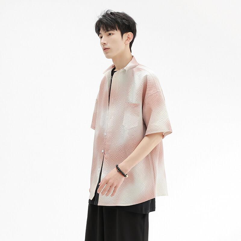 港风白墙工艺专业模特潮流花衬衫冰丝大码短袖衬衫男现货真丝