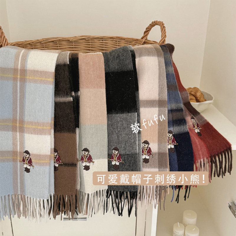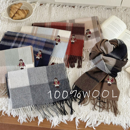 英国订限量小熊100%澳洲羊毛围巾复古英伦风男女情侣格子秋冬