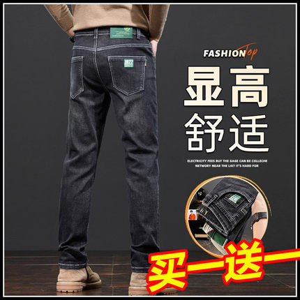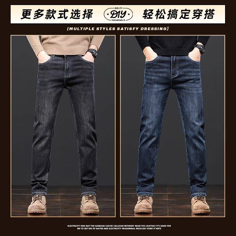 Yishion以纯牛仔裤男士冬季新款直筒修身长裤2025秋冬加绒痞帅高