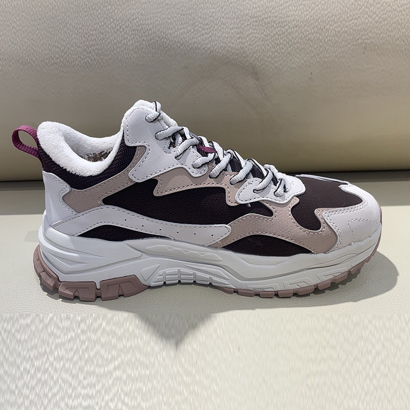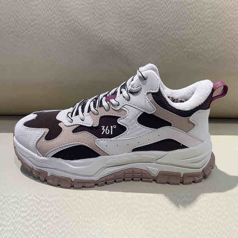 361度女式棉鞋革面2025冬加毛运动鞋361女士中帮休闲鞋582446731A