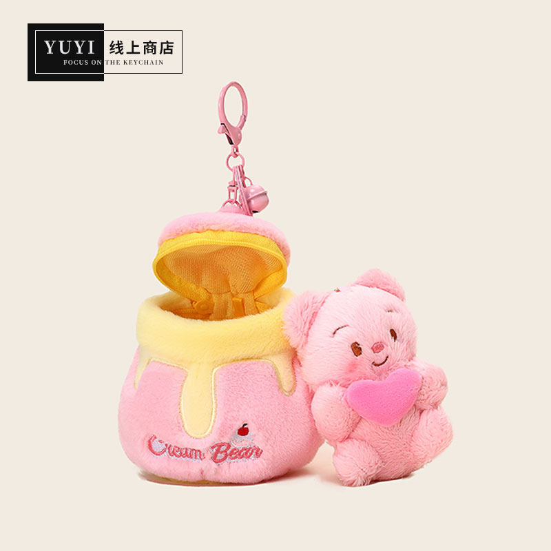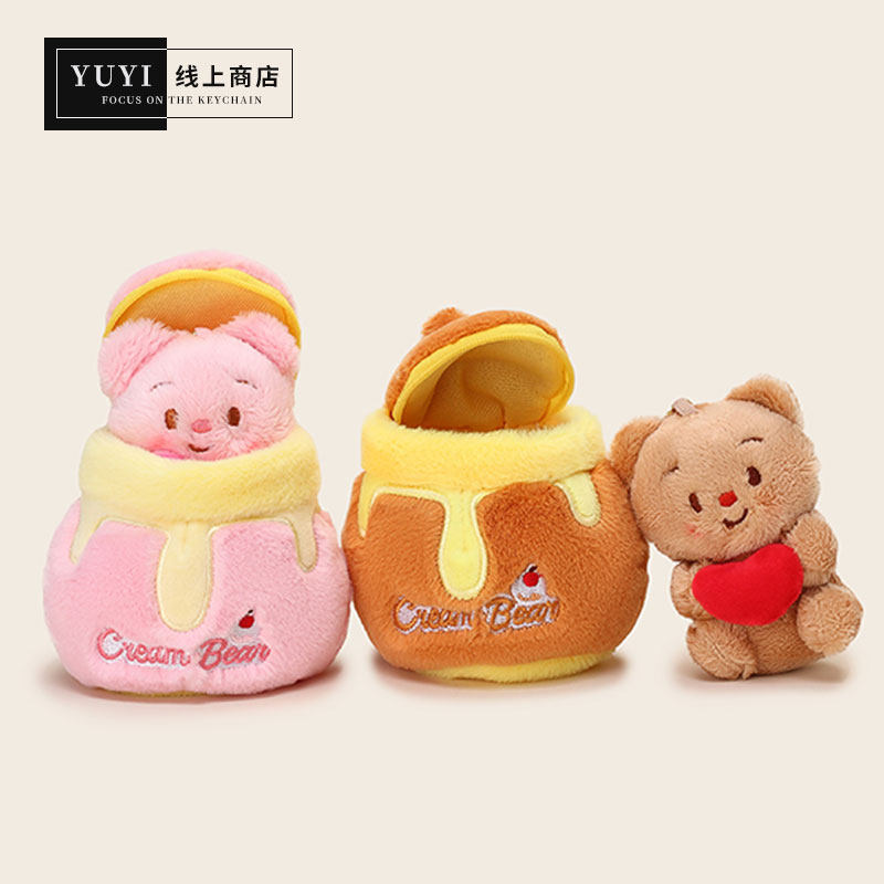 原创蜜蜂罐包挂件黄色奶油小熊情侣玩偶钥匙扣闺蜜礼物毛绒公仔