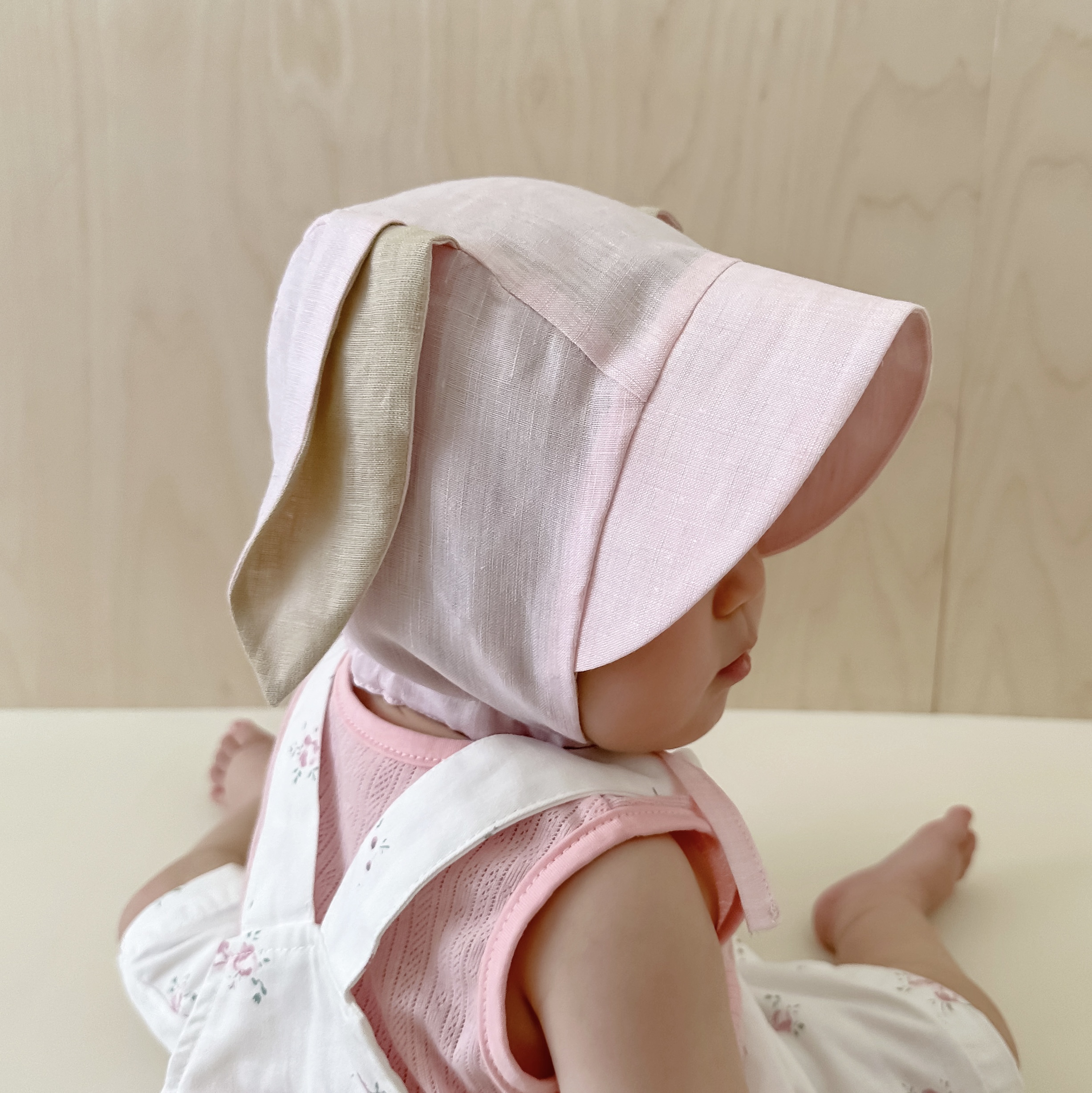 可爱兔子棉麻大帽檐婴儿遮阳帽夏