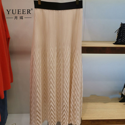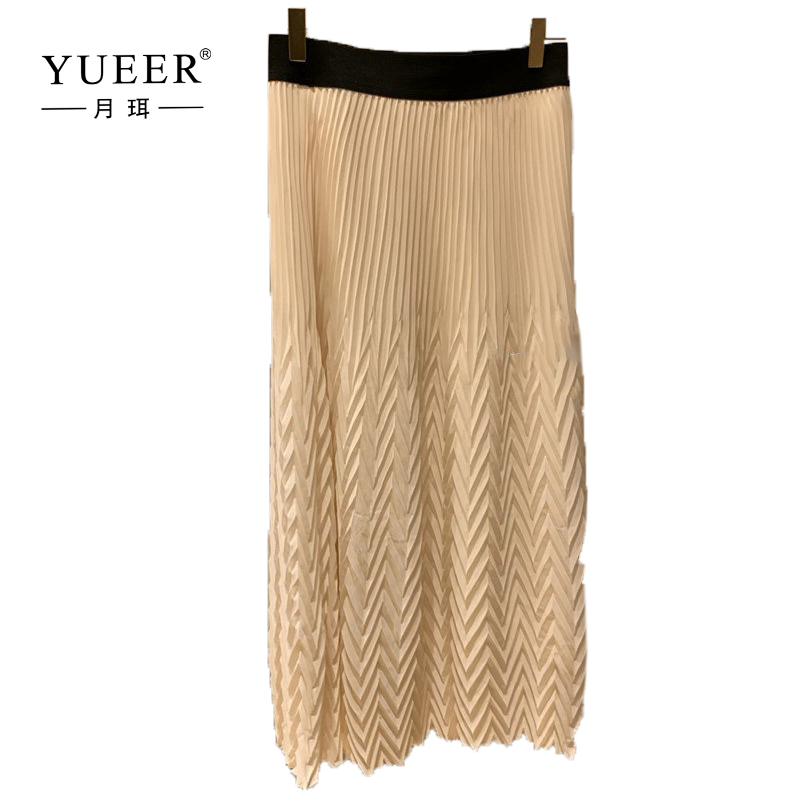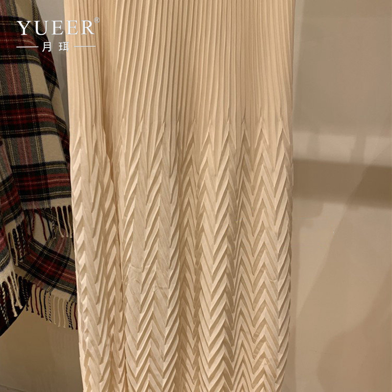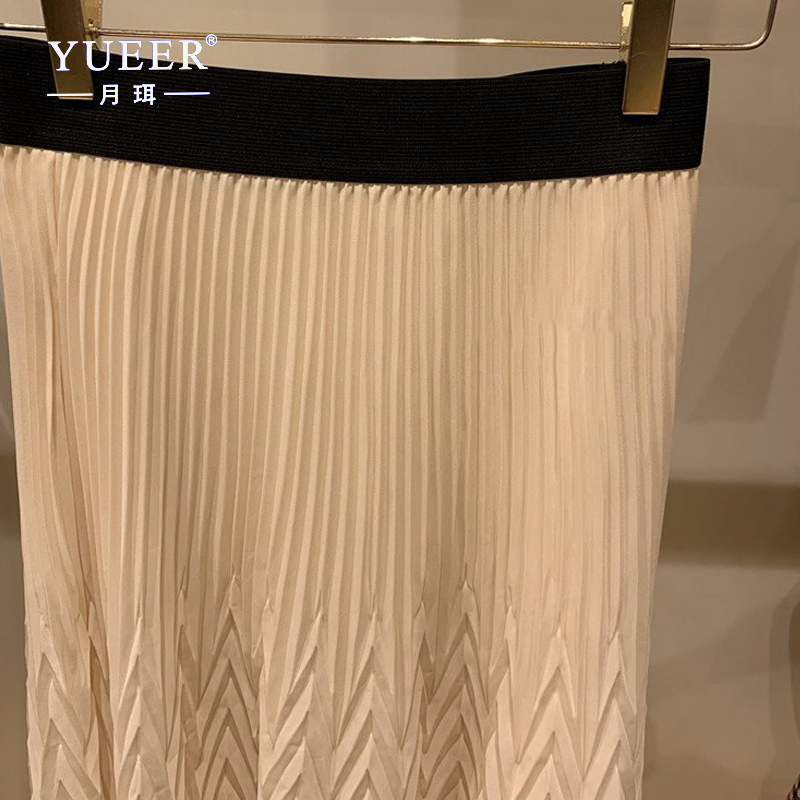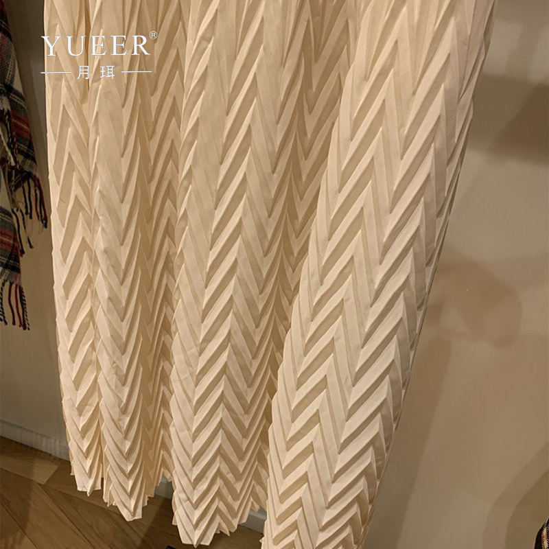 法国M家春夏新款女装半身裙波浪纹松紧腰百褶裙淑女风