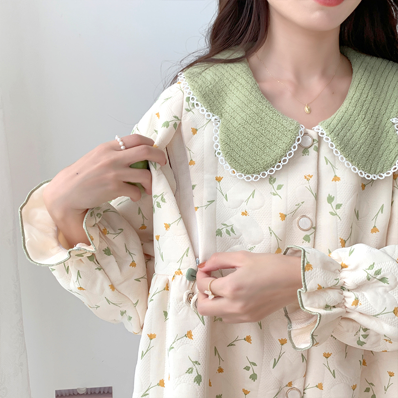 加厚空气棉月子服秋冬季产后纯棉12月份喂奶哺乳孕妇睡衣产妇春秋