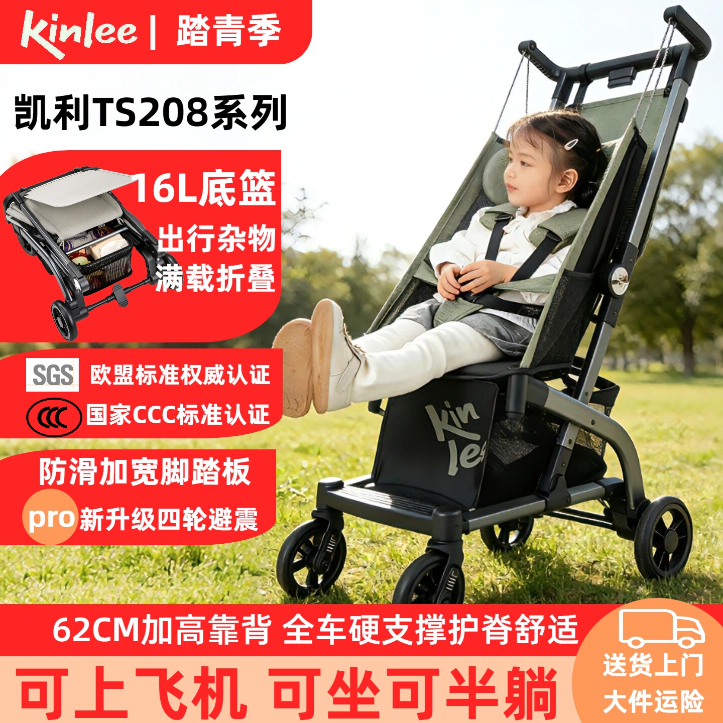 口袋式推车轻便婴儿推车一键折叠可登机可坐可半躺溜娃凯利TS208A