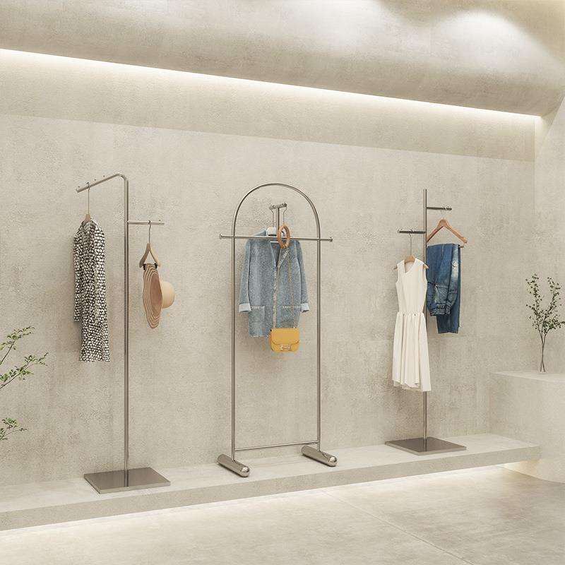服装店展示架不锈钢落地式带轮中岛货架移动正挂男女装店陈列道具