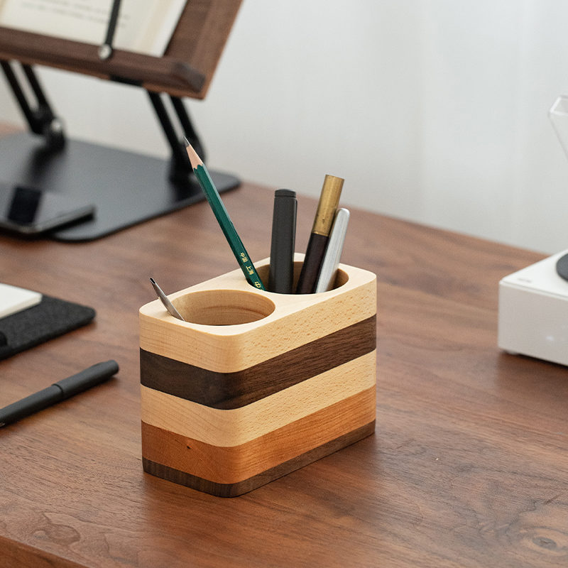 实木笔筒轻奢高级感学生桌面收纳办公室教师节礼物创意多功能笔筒