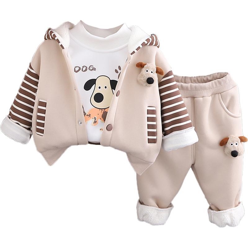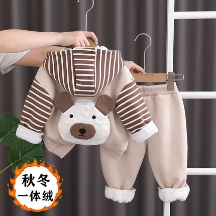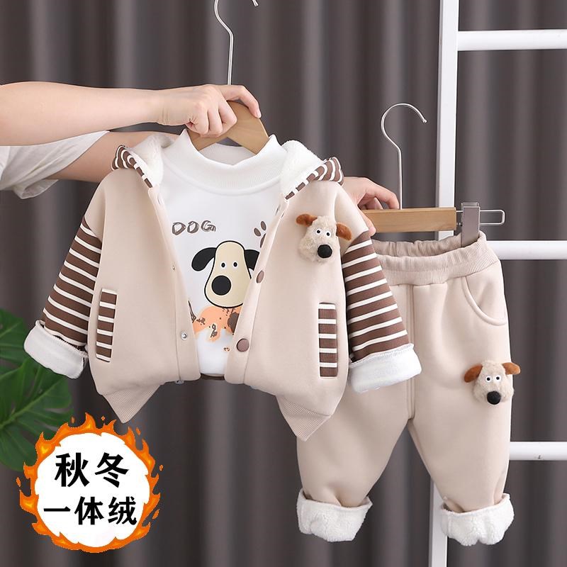 男童加绒套装宝宝秋冬季一体绒三件套F婴儿童洋气休闲棒球服冬装