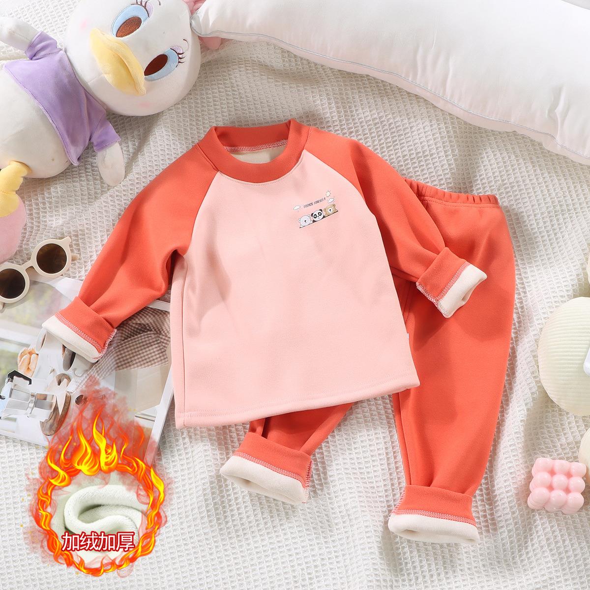 儿童加绒秋衣秋裤保暖加厚套装男女童宝宝秋冬季德绒打底内衣批发