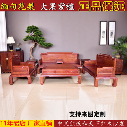 缅甸花梨中式和天下加厚独板红木沙发 大果紫檀原木客厅红木家具