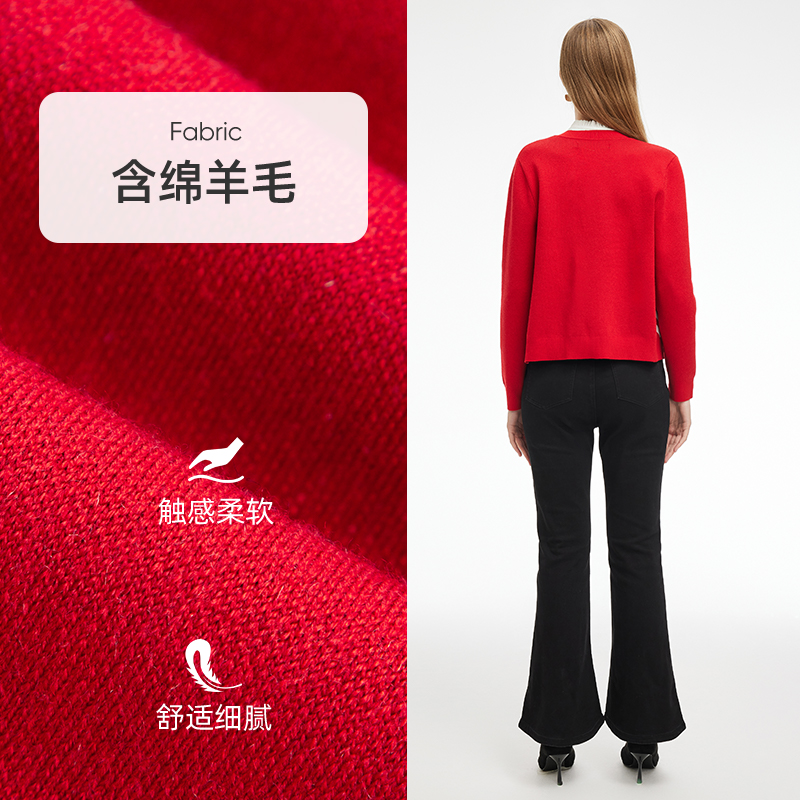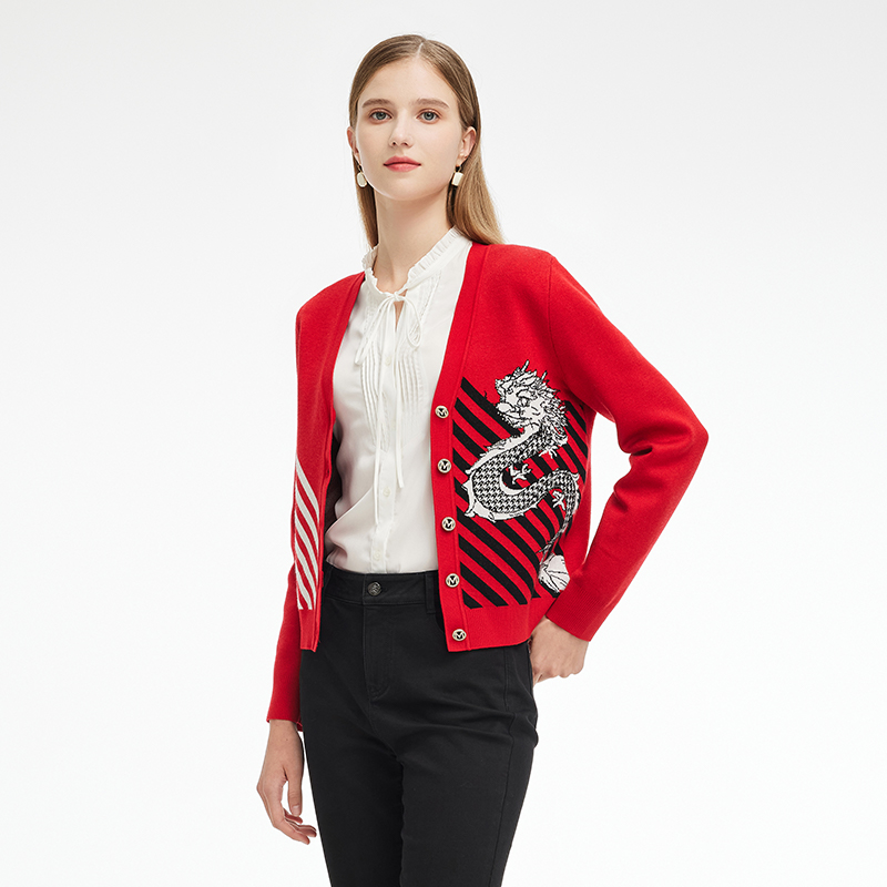 专柜正品马天奴女装秋冬红色条纹毛针织开衫外套毛衣MRA801SWH0