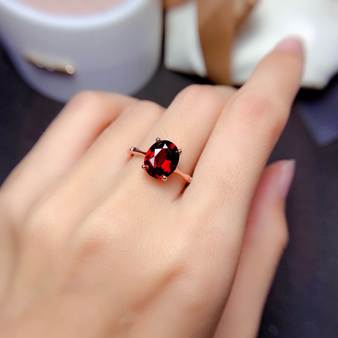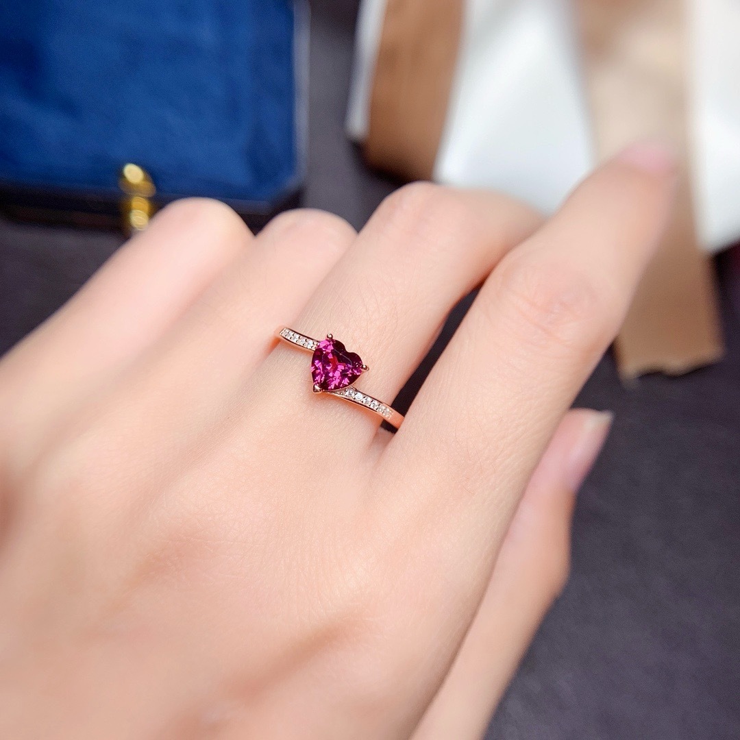 天然石榴石s925银戒指真品正品时尚小众款心形简约