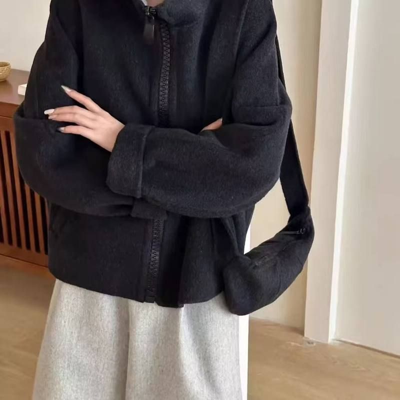 2025秋冬新款双面羊毛大衣女短款小个子韩版宽松休闲拉链毛呢外套