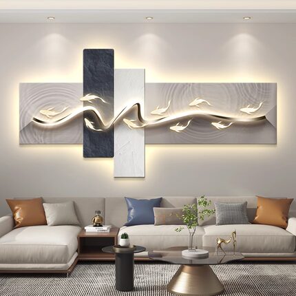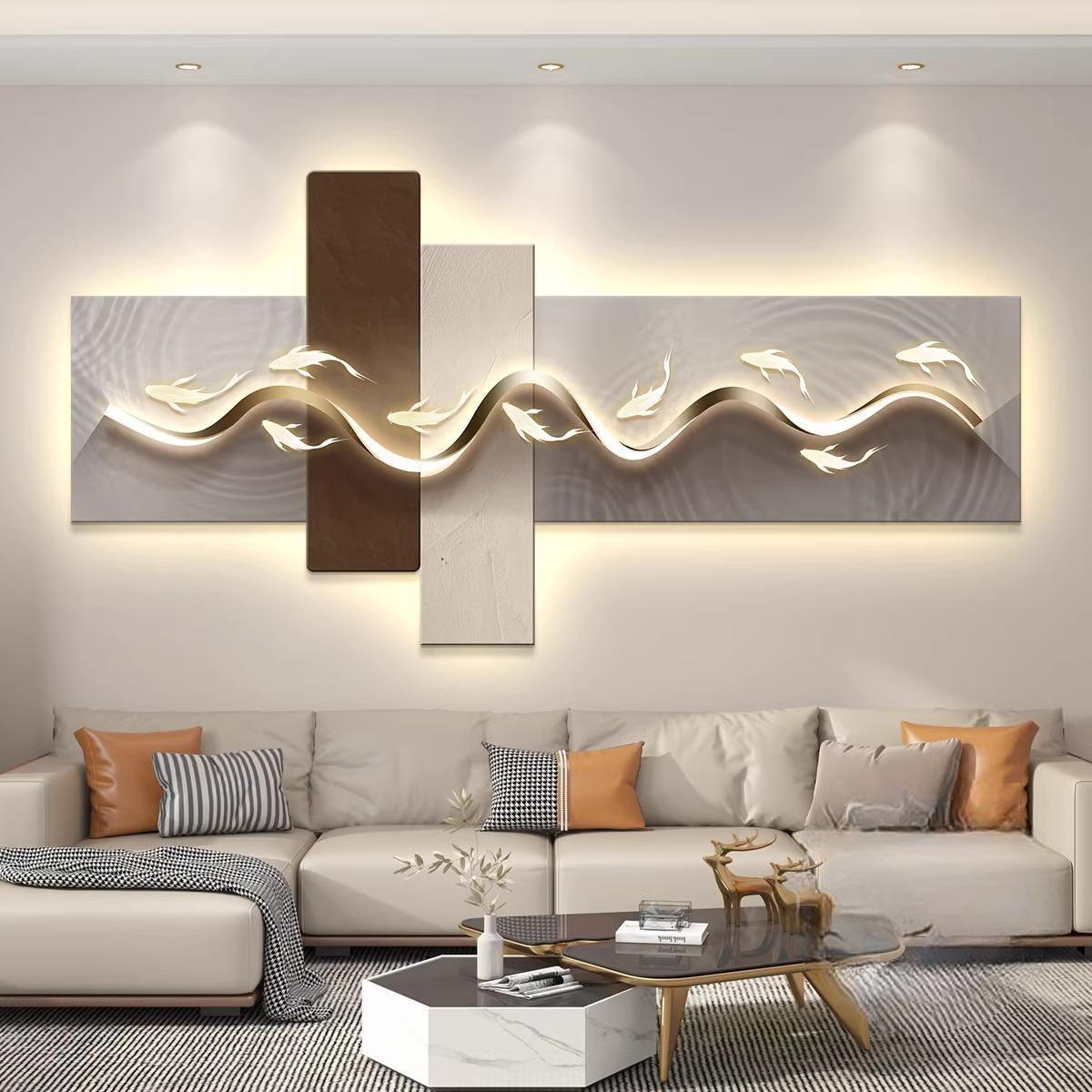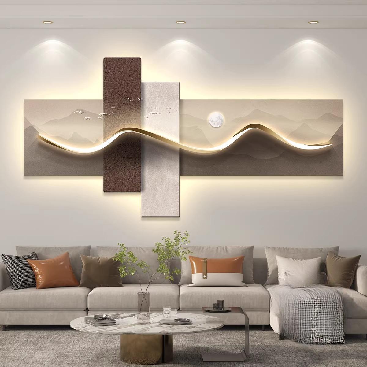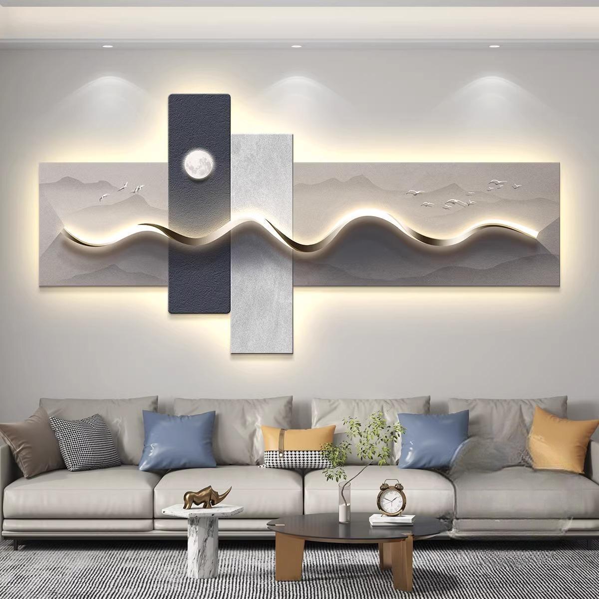 轻奢led带灯客厅装饰画沙发背景墙挂画壁画抽象高级感简约现代