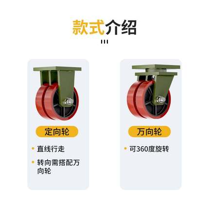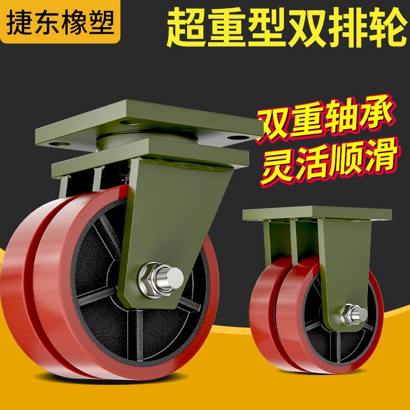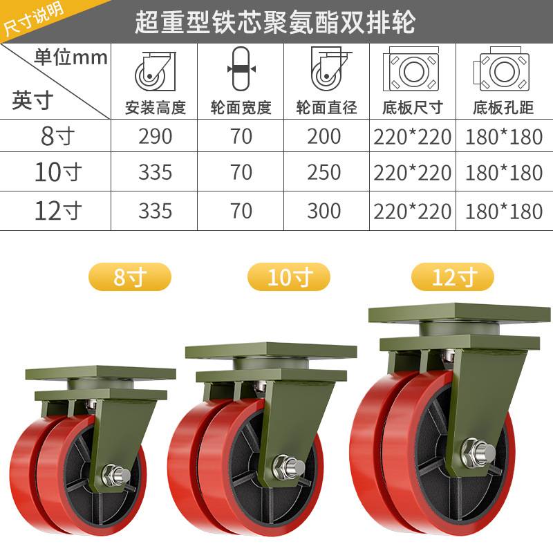 米想双排铁芯万向轮6/8/10/12寸尼龙PU聚氨酯载重3/5吨双轮脚轮