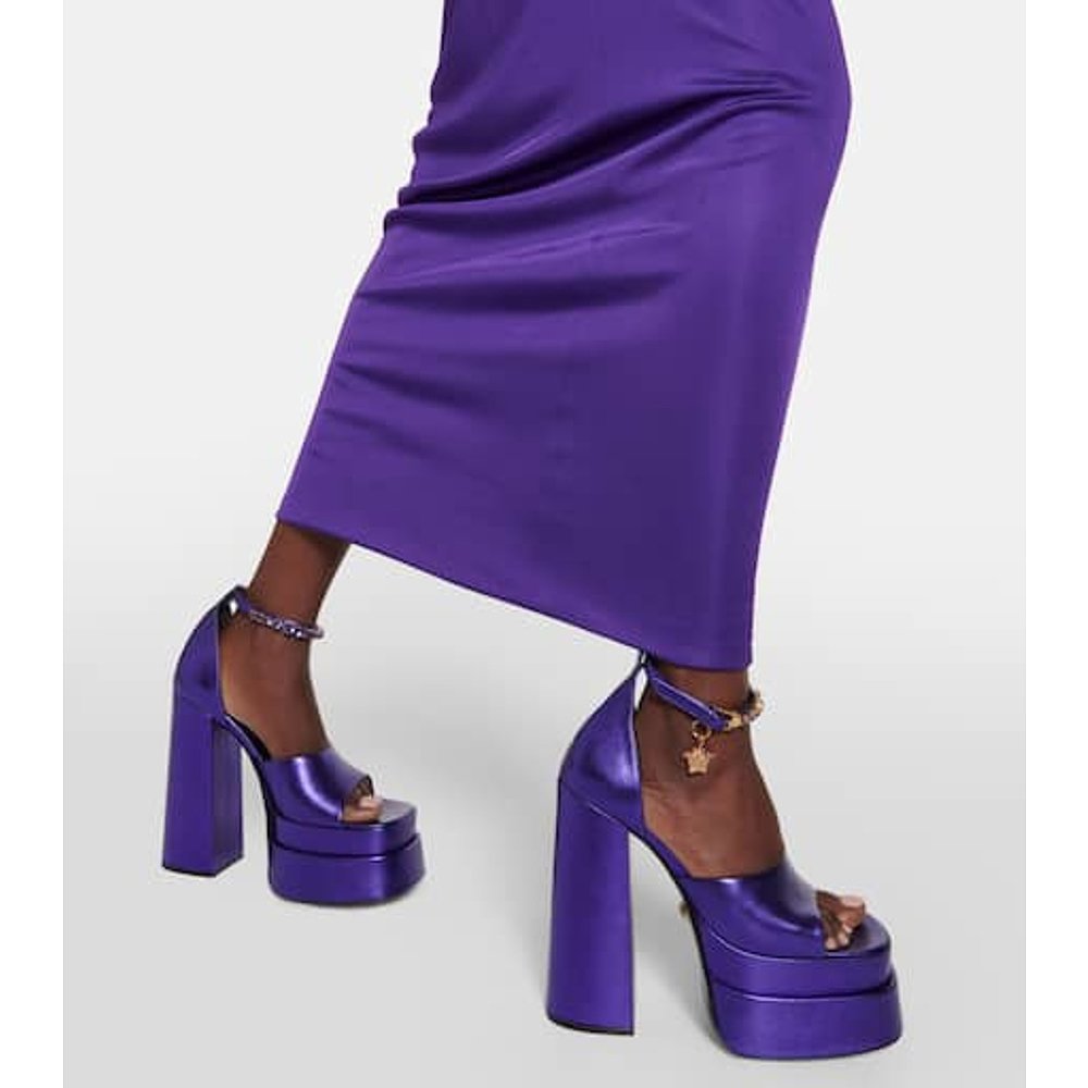 香港直邮Versace 范思哲 女士 Medusa Aevitas 皮质防水台凉鞋 00