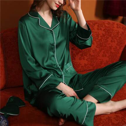 睡衣女春秋季高档桑蚕丝女士真丝套装简约薄款可外穿可外穿家居服