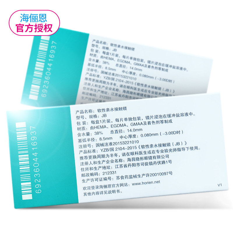 海俪恩隐形近视眼镜半年抛盒1片*2盒保湿透润非日抛月抛官网正品