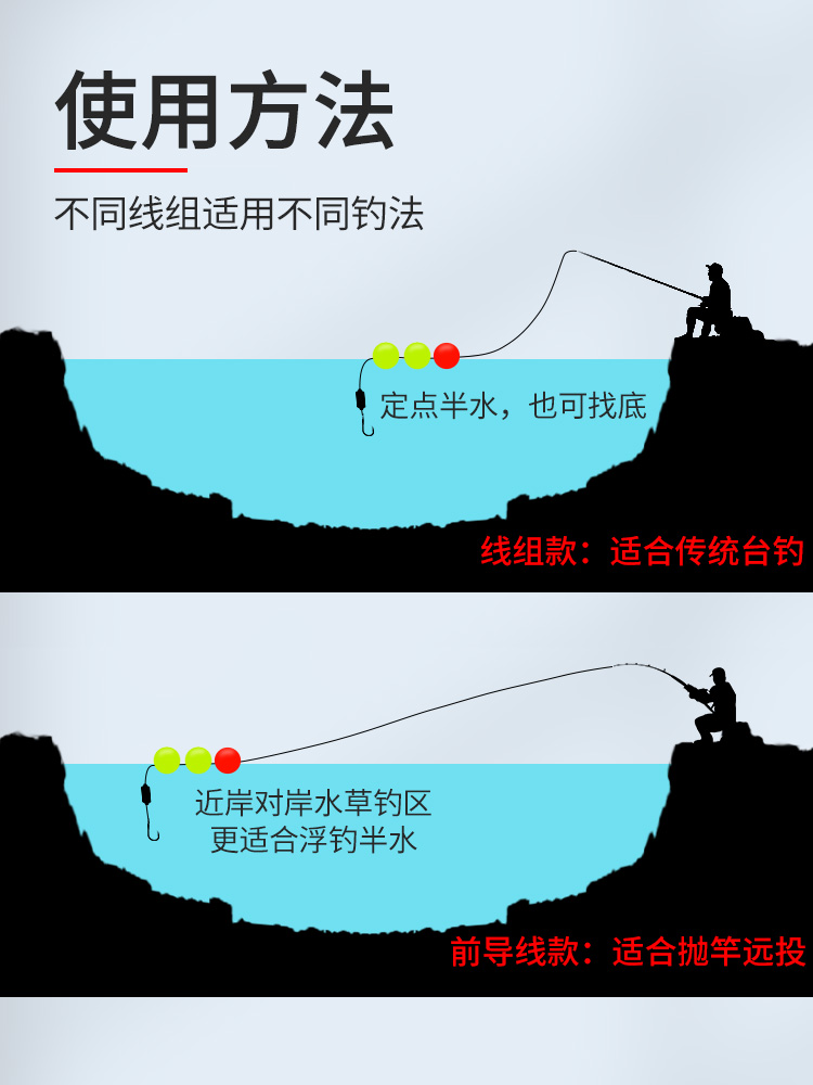 川泽浮钓草鱼线组成品手竿路亚远投滑漂日夜两用鱼线鱼钩套装全套