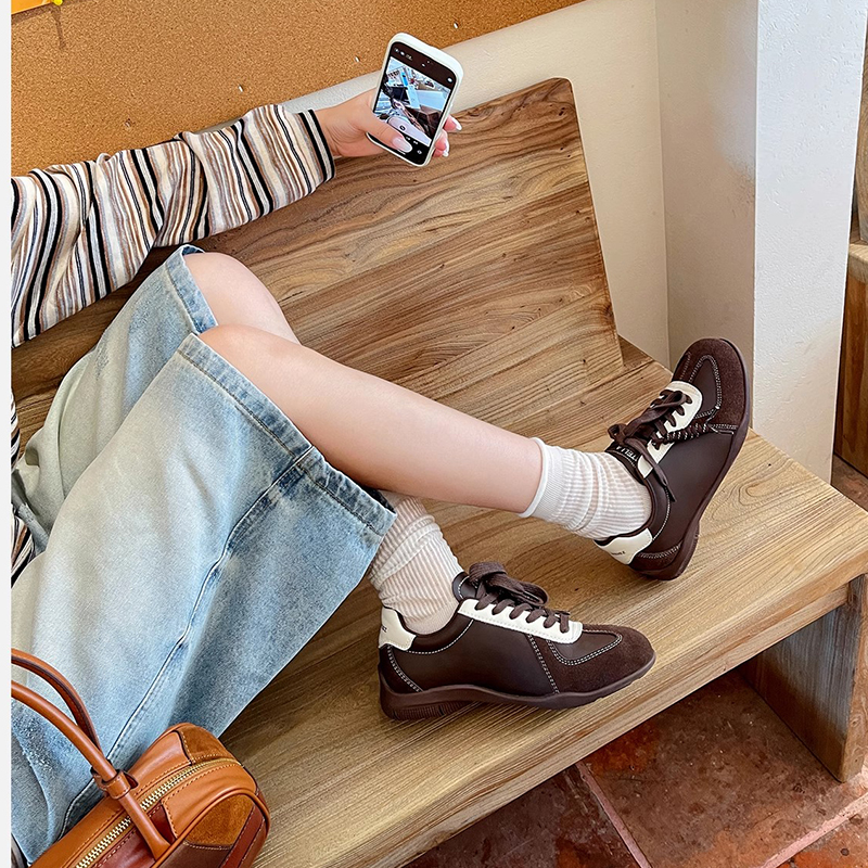 小白鞋厚底增高拼色百搭舒适休闲板鞋内增高德训鞋小码女鞋313233