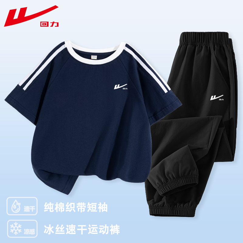回力童装儿童夏装套装2025新款女童夏季透气短袖男童休闲运动衣服
