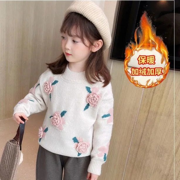 女童毛衣秋冬2025新款洋气时髦女孩加绒针织衫儿童外套女大童上衣