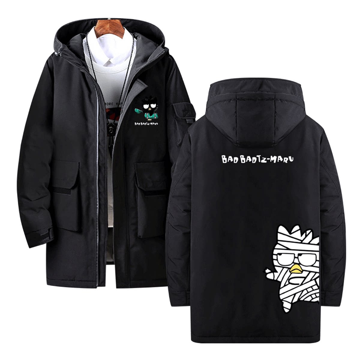 三丽鸥酷企鹅可爱卡通企鹅印花情侣潮流可定制中长款男女冬羽绒服