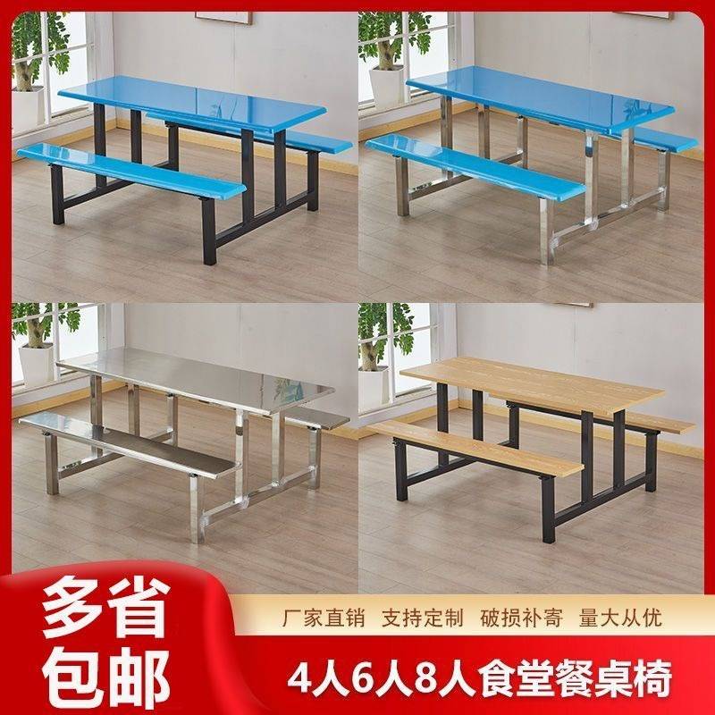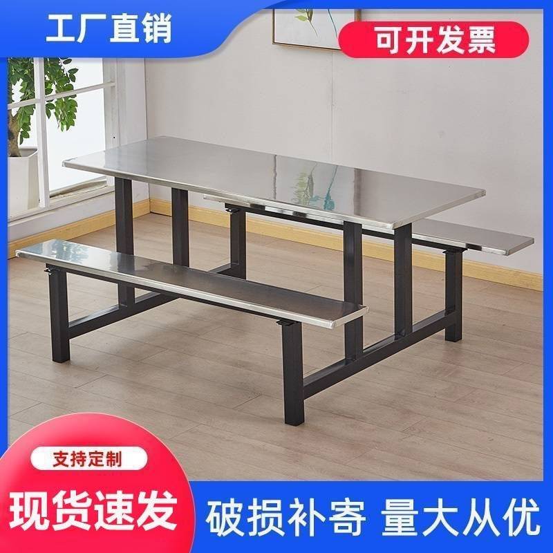 新/不锈钢食堂餐桌学校学生员工餐桌椅组合连体4人6人8人快餐桌经