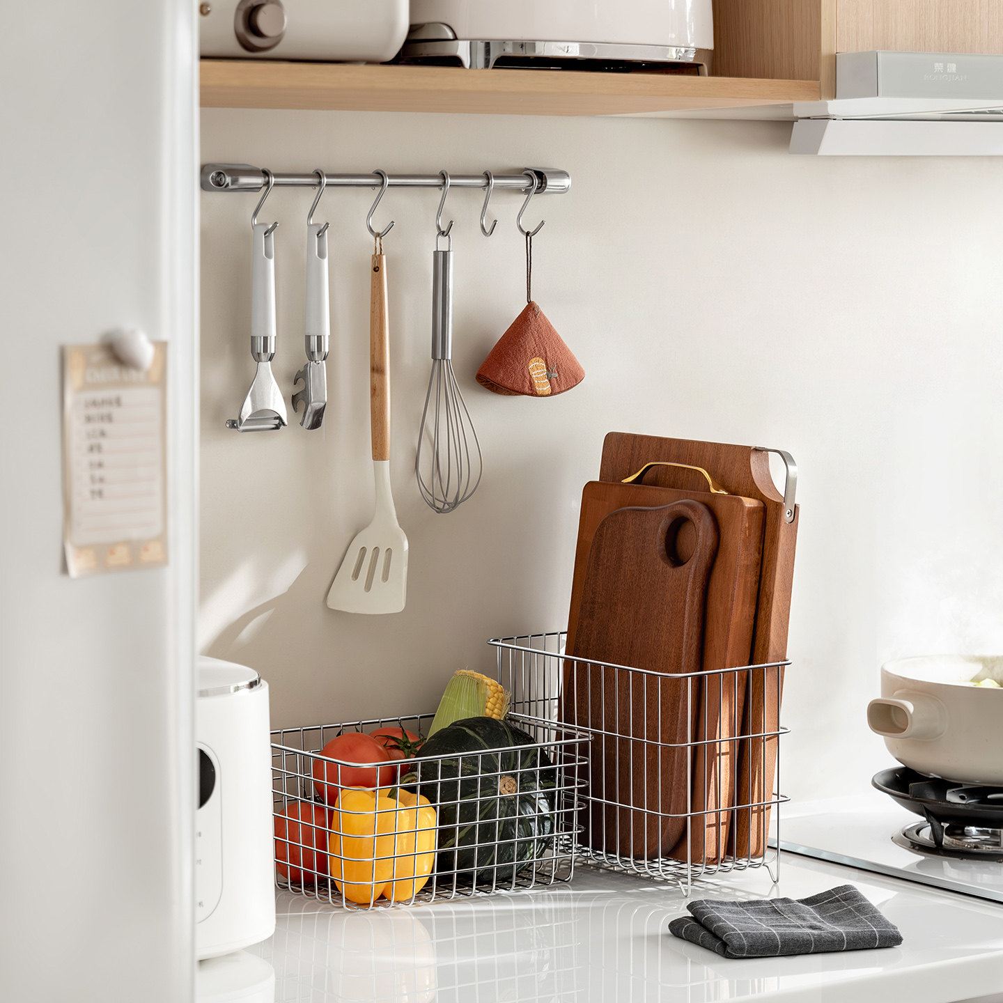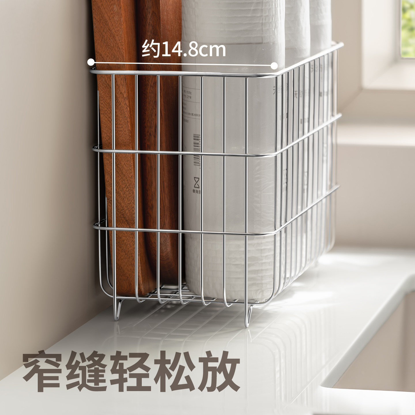 懒角落不锈钢收纳筐网篮厨房大号砧板收纳鸡蛋面包储物篮杂物篮子