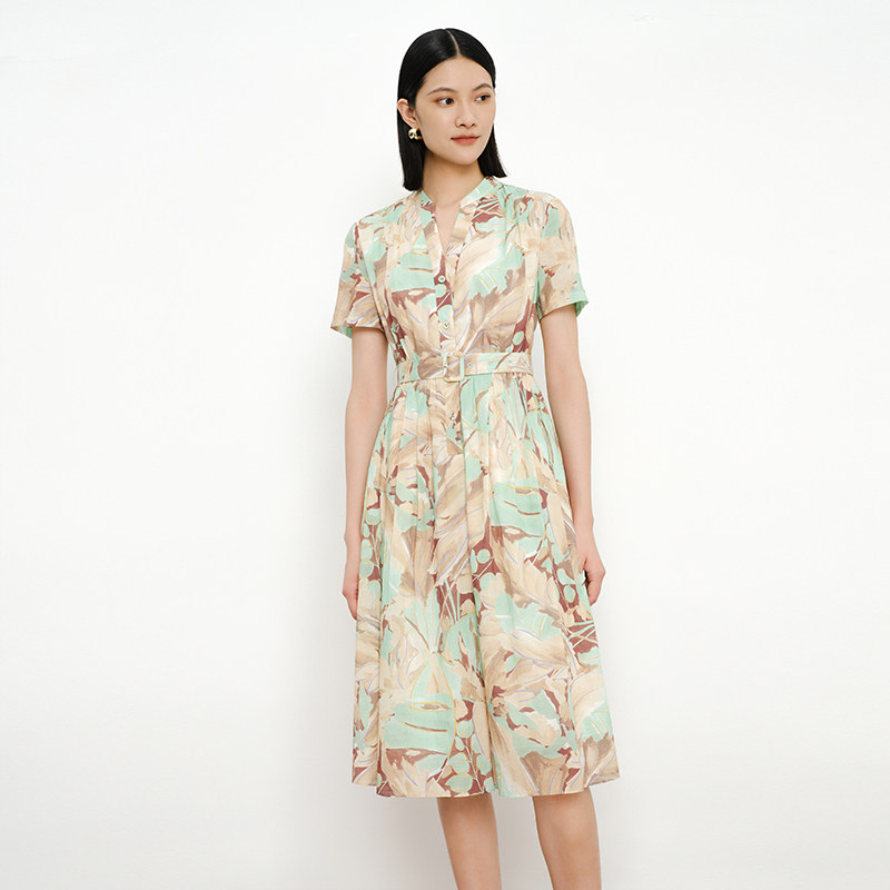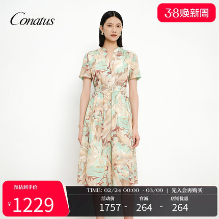 CONATUS/珂尼蒂思夏季新品时尚休闲都市优雅气质印花连衣裙女
