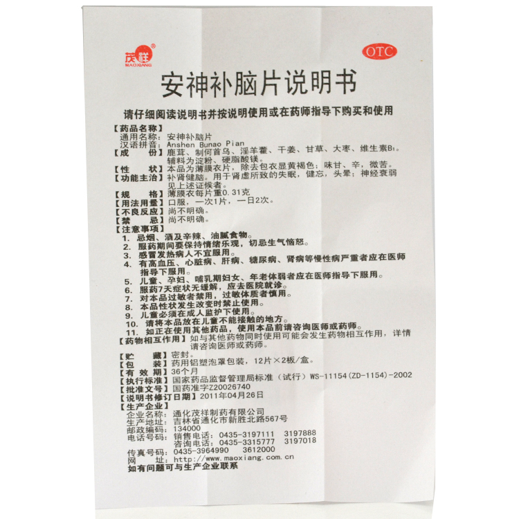 茂祥安神补脑片口服液健脑脑液吉林敖东睡眠失眠改善颗粒0.3124片