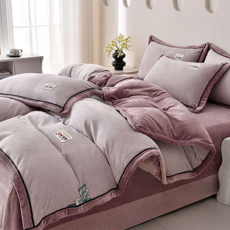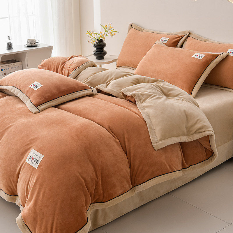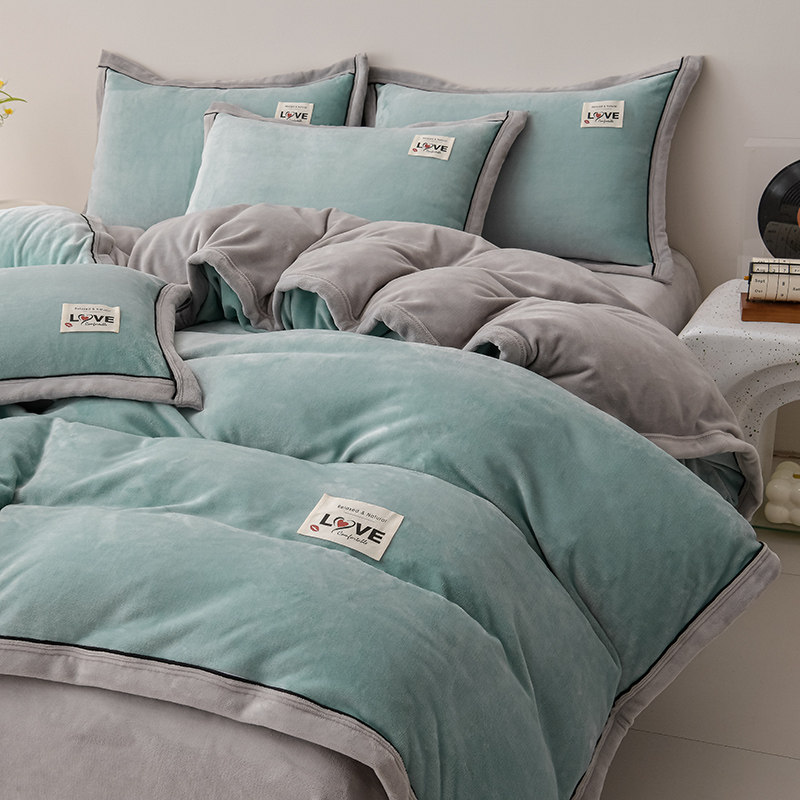冬季加厚牛奶绒四件套珊瑚绒面法兰绒毛被套床单床笠款床上用品三