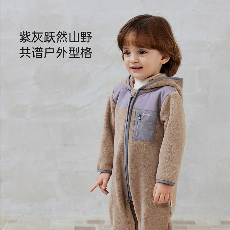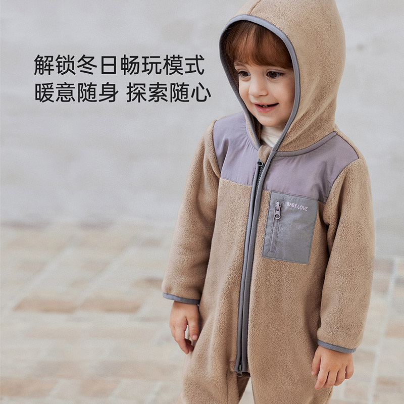 babylove婴儿连体衣秋冬季奥粒绒长袖哈衣宝宝休闲百搭拉链外出服