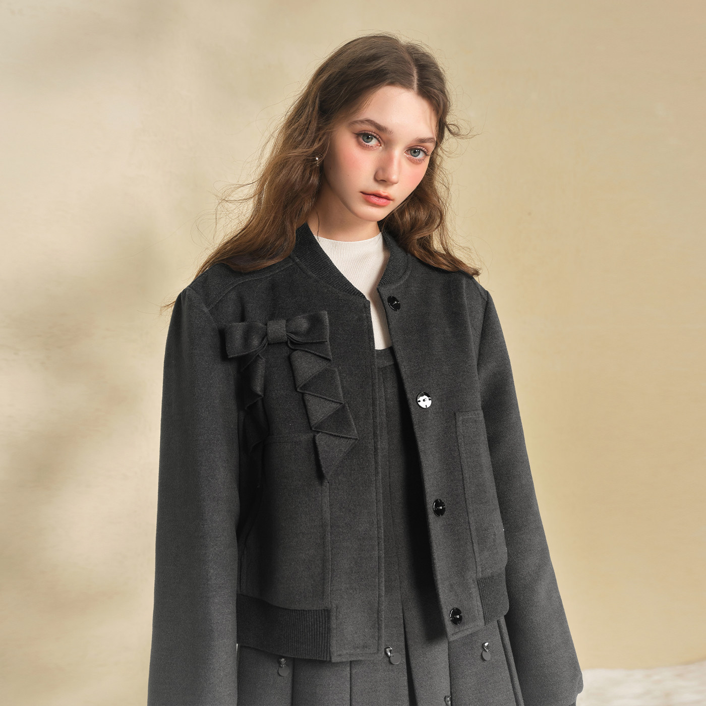 糖力毛呢短外套女宽松棒球服夹克