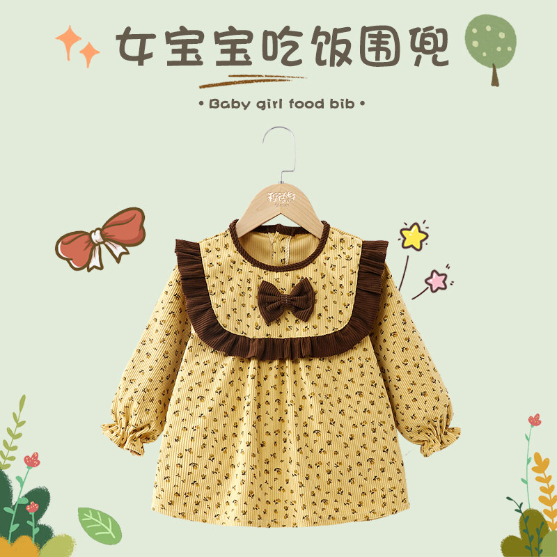 秋冬女宝宝罩衣外穿洋气儿童围裙公主裙围兜防水防脏婴儿吃饭护衣