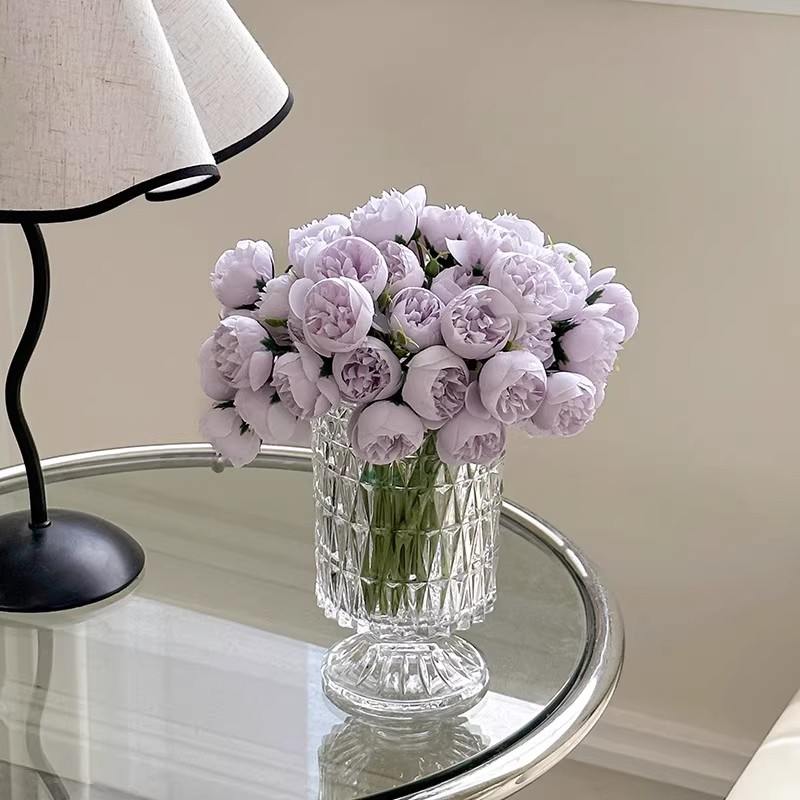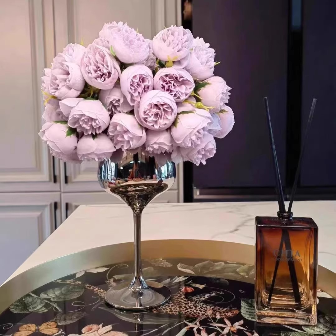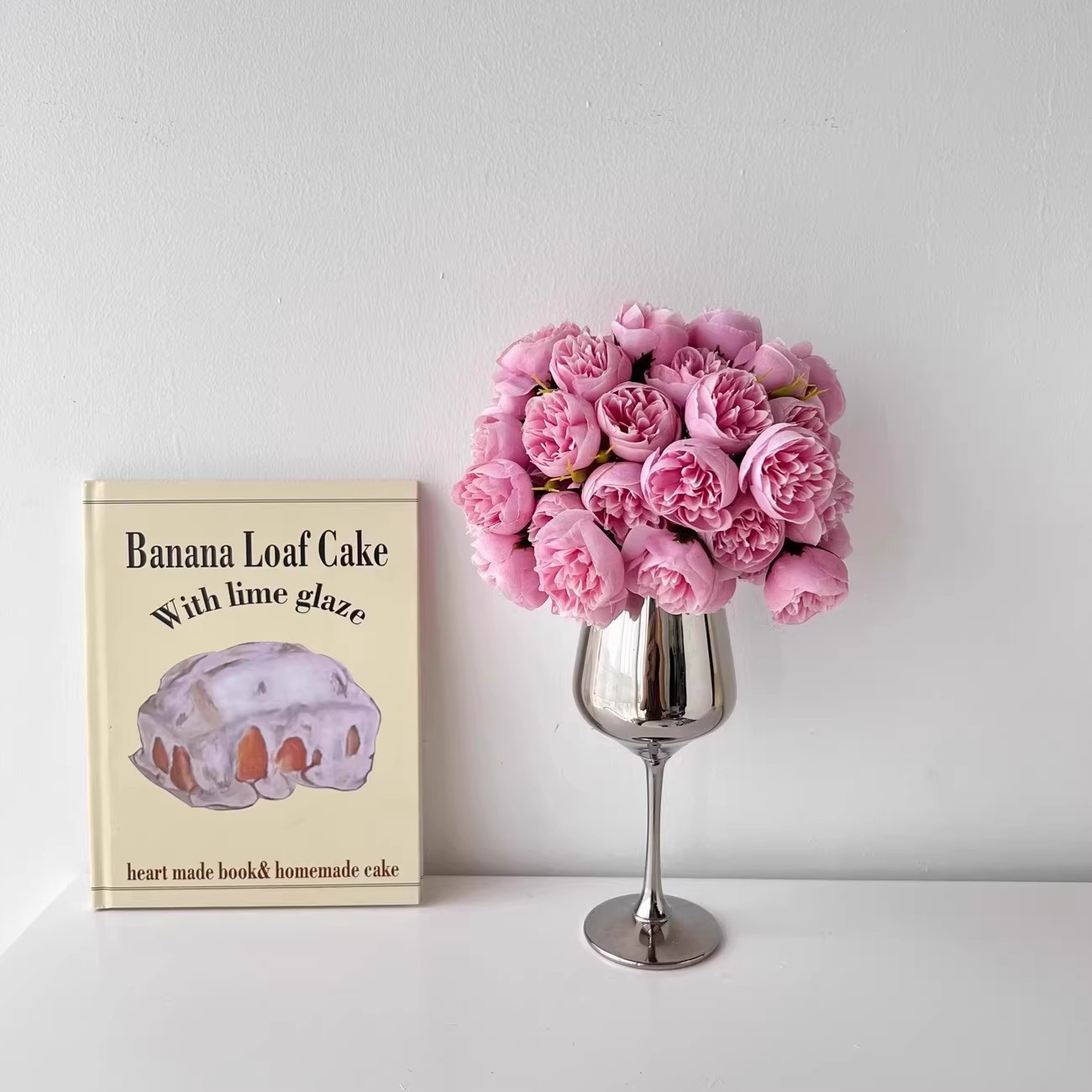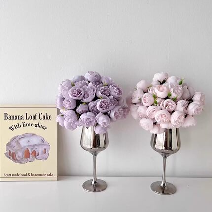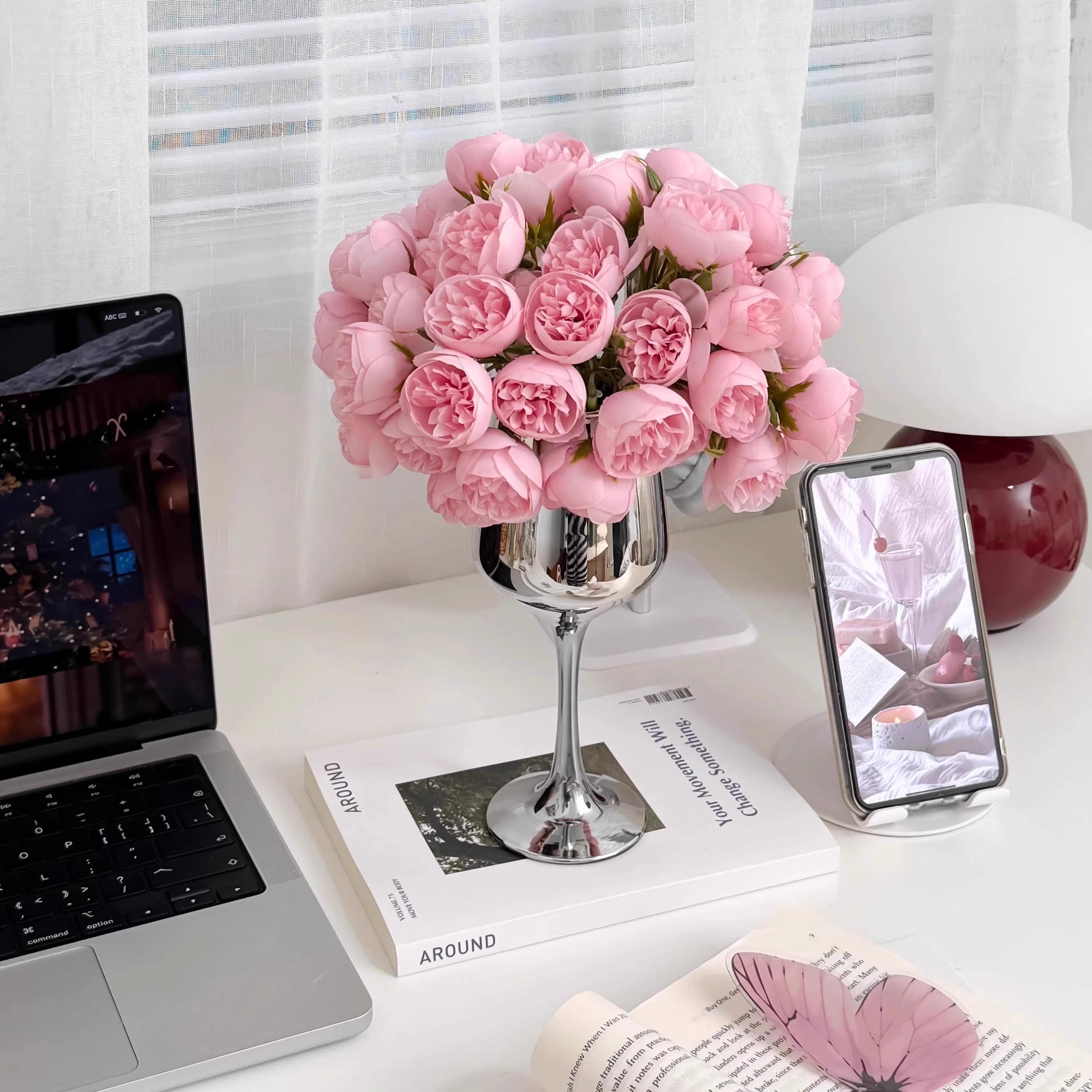 仿真玫瑰花假花客厅酒店装饰花摆件多头小牡丹绢花造景拍摄道具