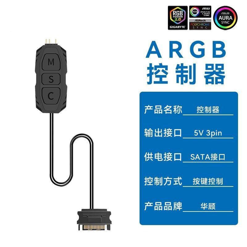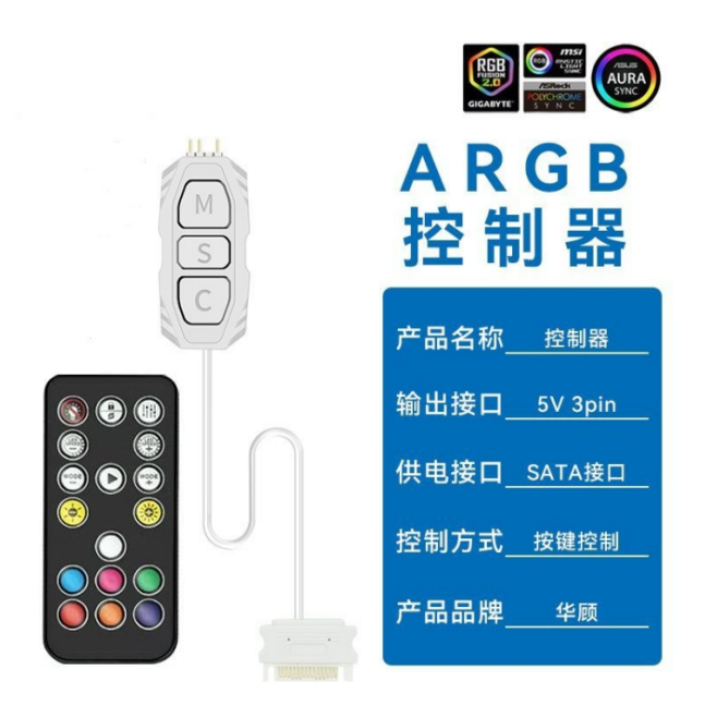 5V3针ARGB控制器机箱风扇ARGB神光同步LED灯带遥控器5V3pin转SATA