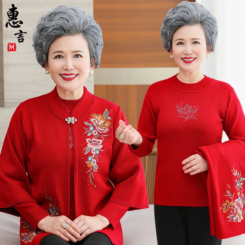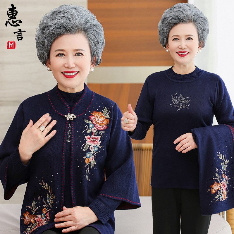 中老年人春装女奶奶装衣服老人太太毛衣开衫两件套装妈妈春秋外套