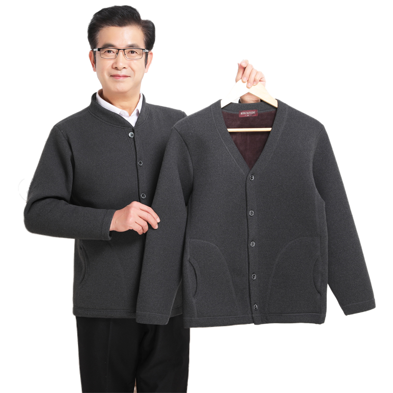 爸爸装加绒加厚针织开衫毛衣爷爷中老年男士冬装棉衣外套保暖大码